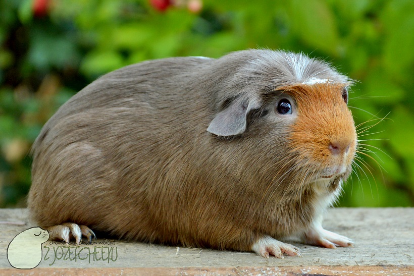 Topinka je anglický crested v barevné kombinaci slate blue-bílé-zlaté, jejíž břidlice je nádherně tmavá (u kořene chlupu je však světlejší). Stavebně je to zatím lehčí typ morčínky, byť pohledově na to nevypadá, je to taková vyžle, ale ještě je mlaďounká, tak uvídíme, jak doroste ... Hlavičku má pěknou, korunka je krásně otevřená a ty plachťáky? :)